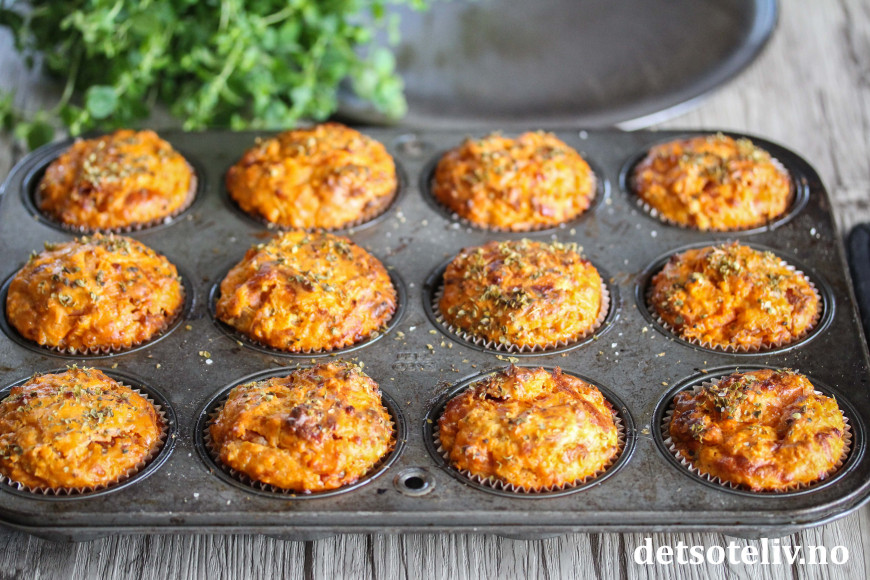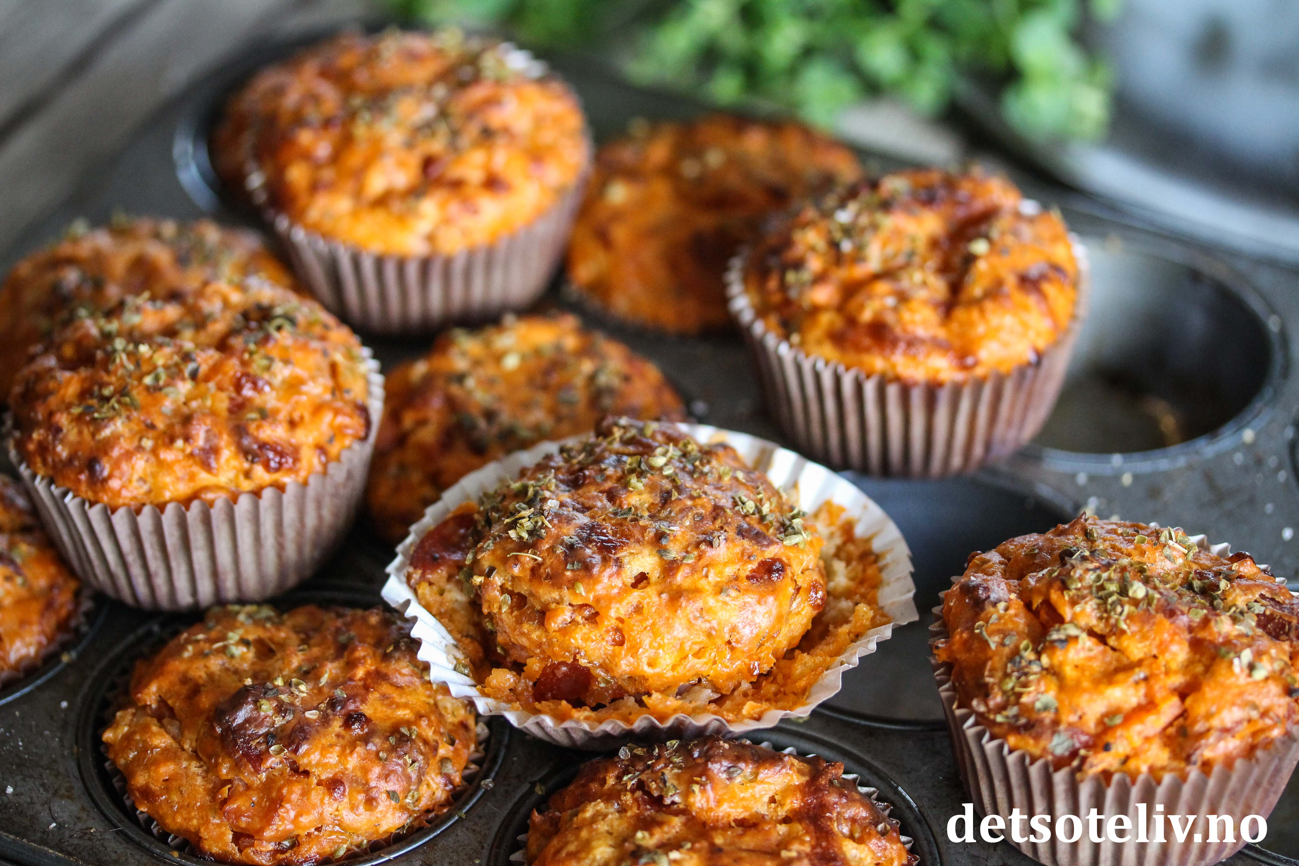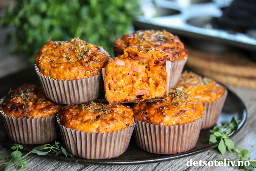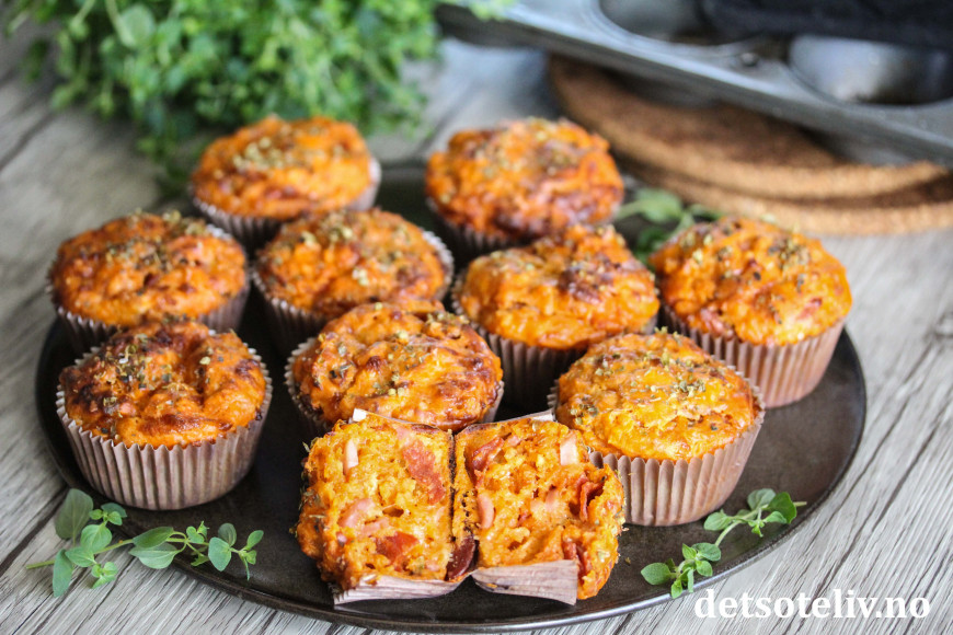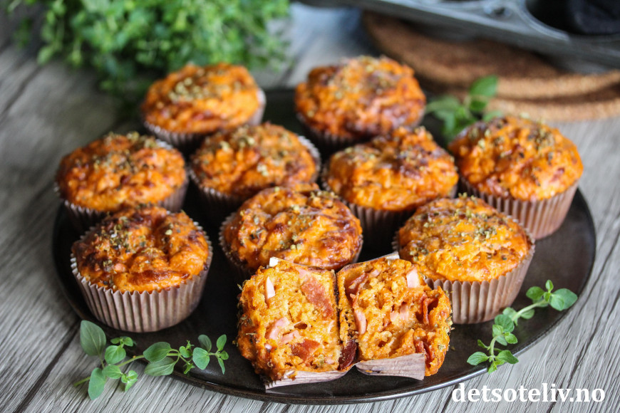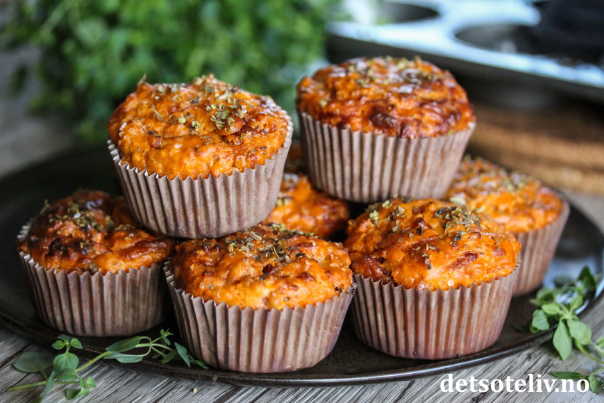 Se også oppskrift på kjempepopulære Muffins med ost og skinke og Ostemuffins med kesam.