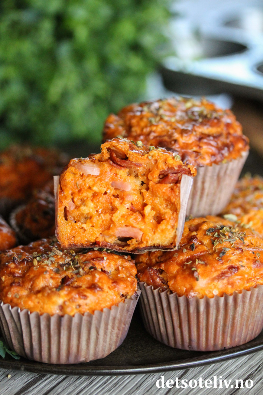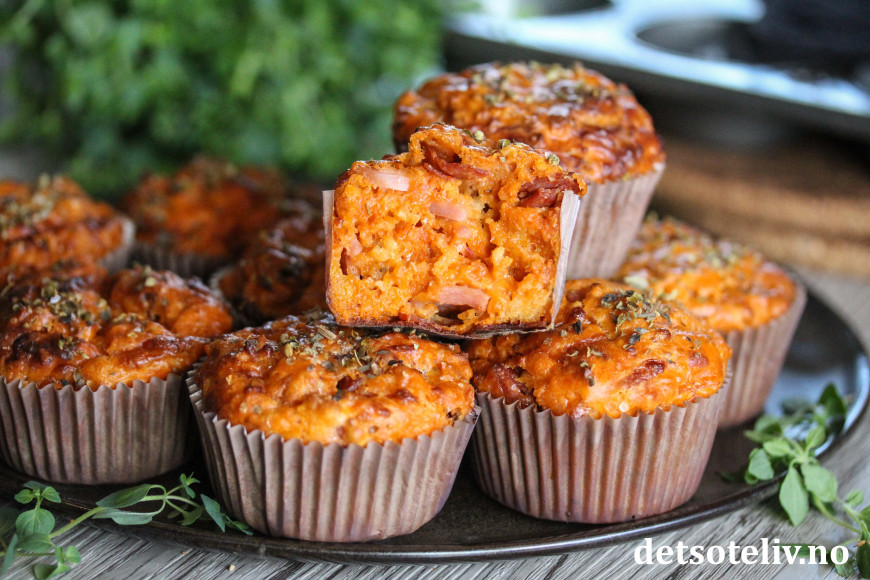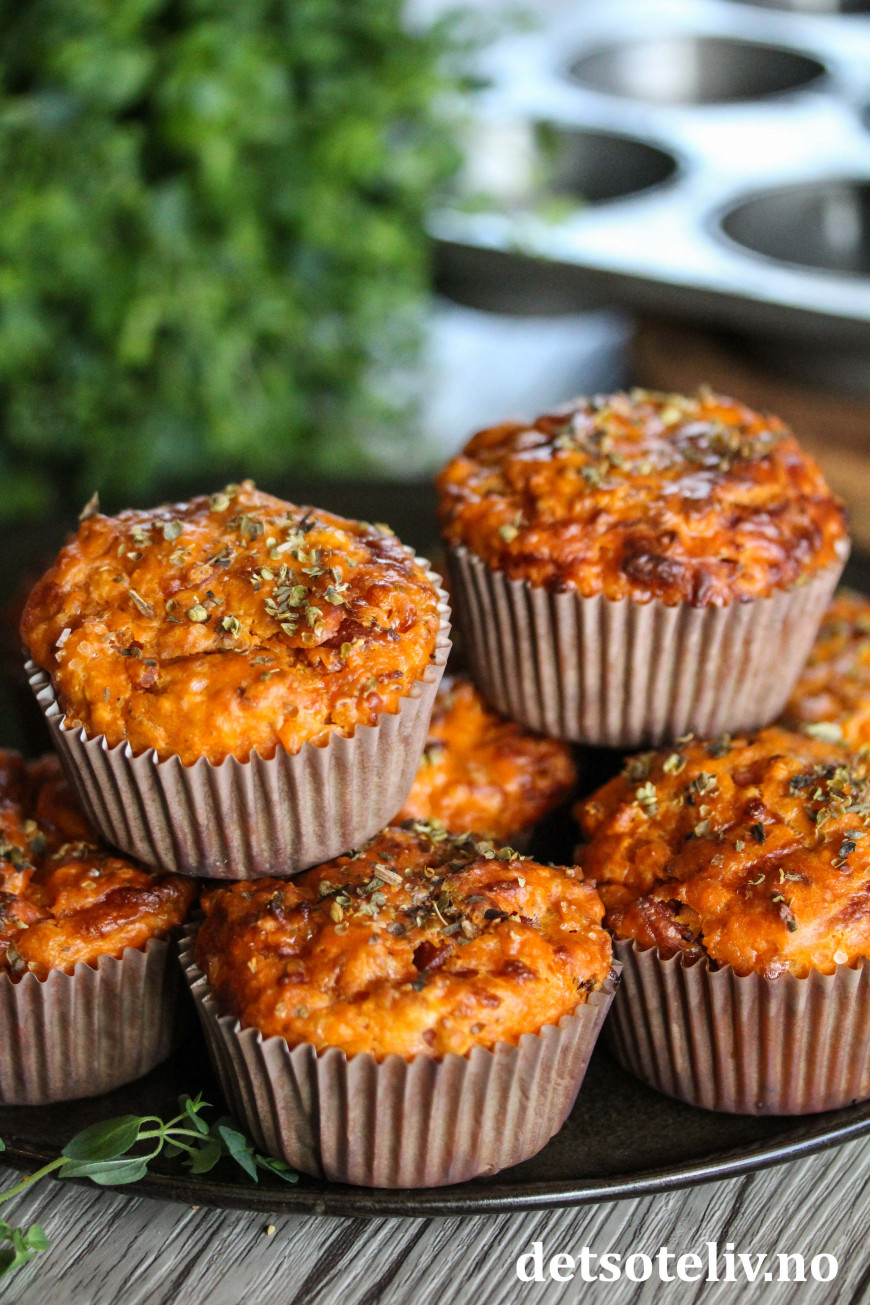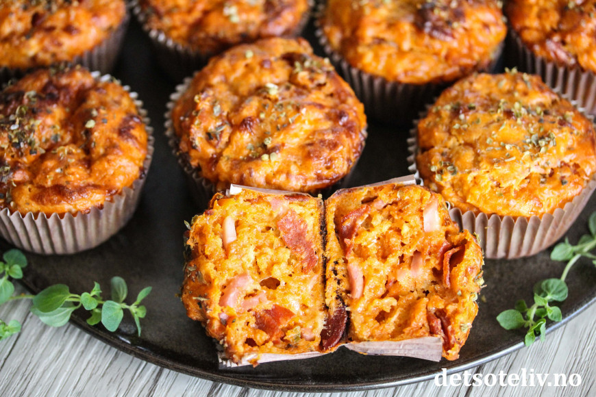 Se også oppskrift på kjempepopulære Muffins med ost og skinke og Ostemuffins med kesam.