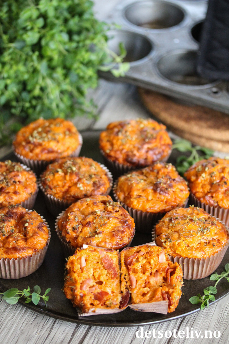 Pizzamuffins er dessuten kjekke å ha med på tur, og er populære å legge i matpakken til ungene.