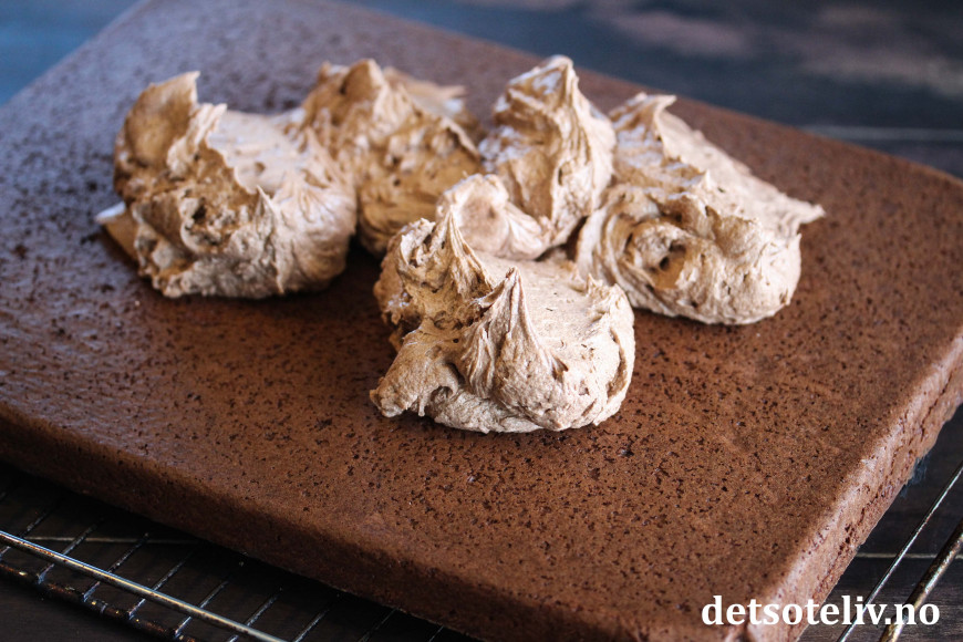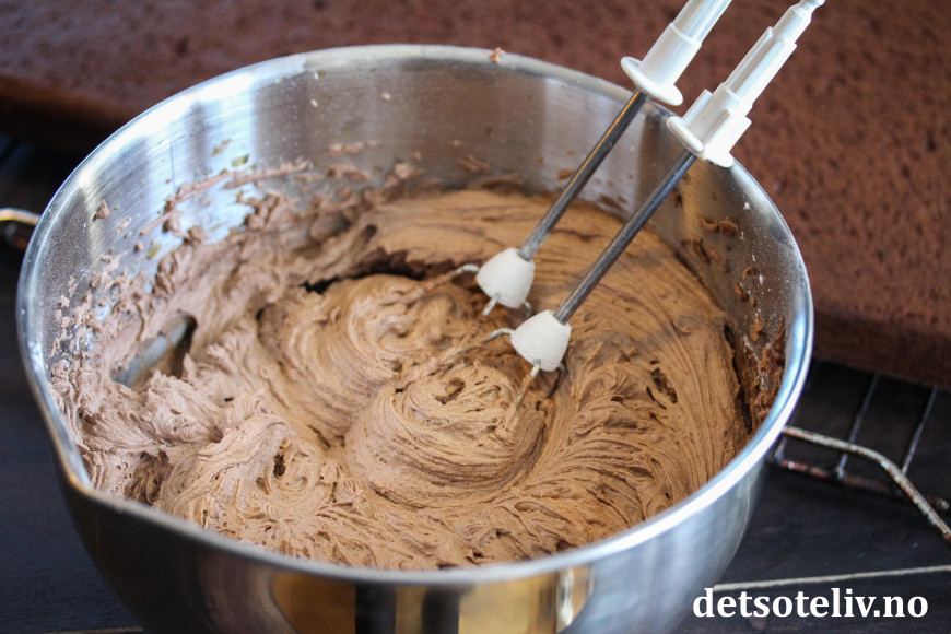 ♥ Dersom du synes at sjokoladekremen er for bløt, hjelper det å ha den en stund i kjøleskapet før du smører den over kaken.