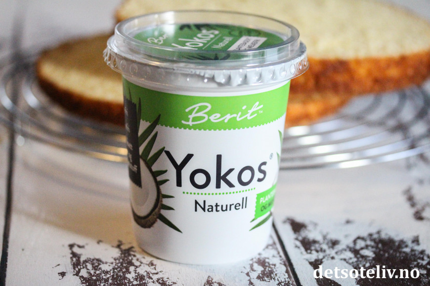 ♥ Yoghurt med kokossmak finnes i flere varianter. Du kan gjerne bruke 2 begre av denne kokos-yoghurten fra Tine. Det går også fint å bruke vegansk yoghurt laget av kokosmelk, slik som Yokos (som er supergod).