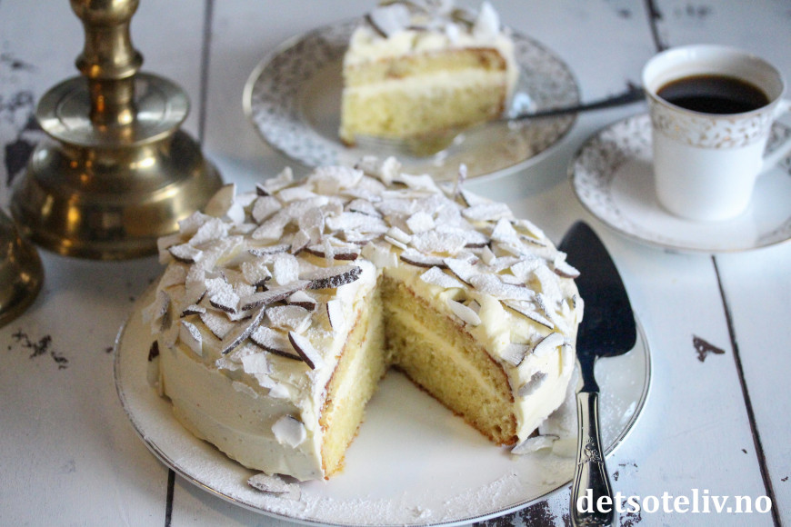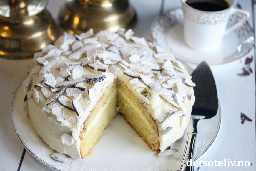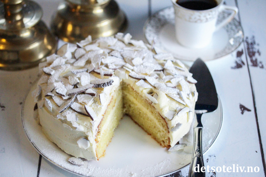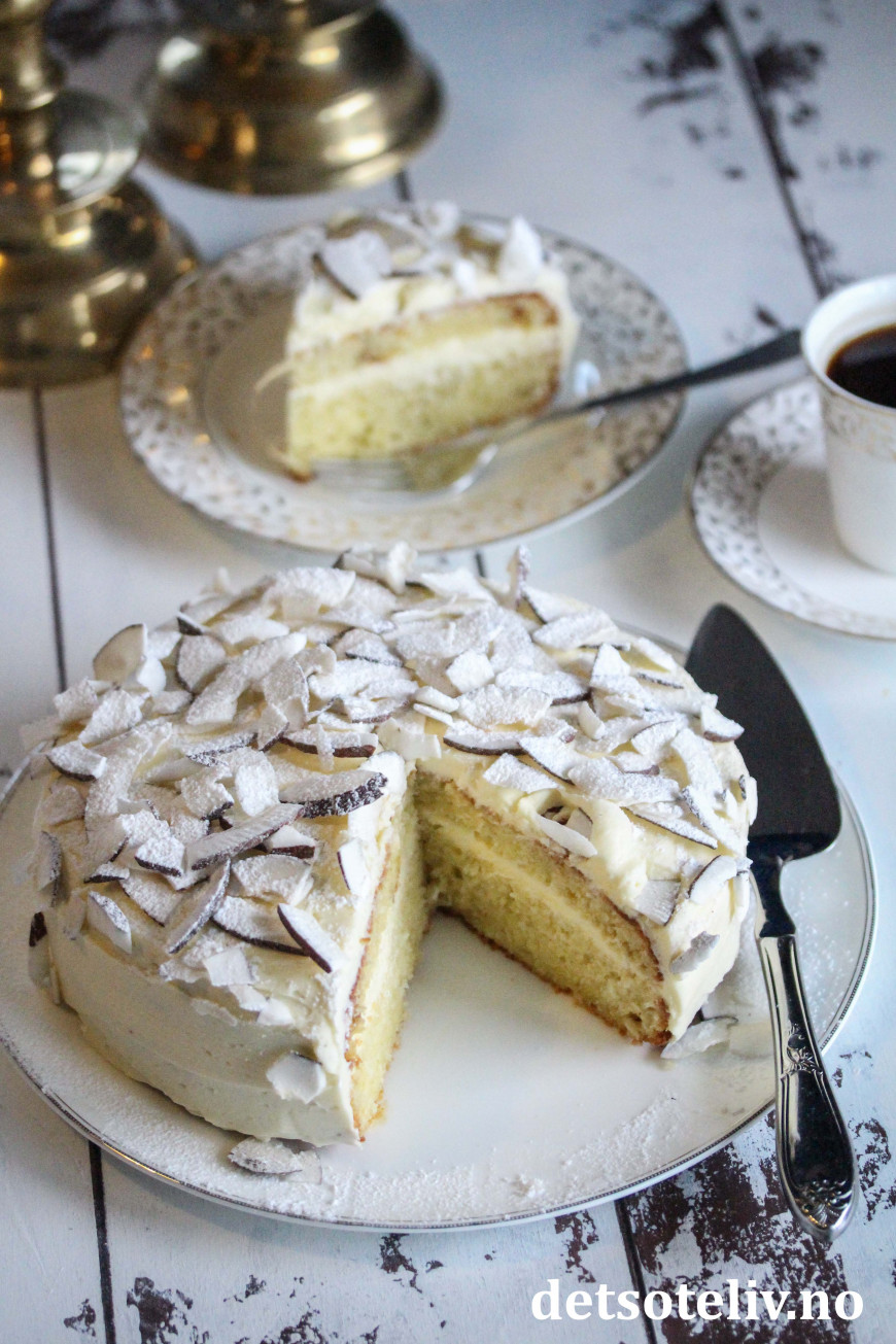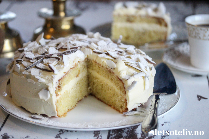 Her har du en saftig og lettlaget kake, med mild smak av vanilje og kokos.