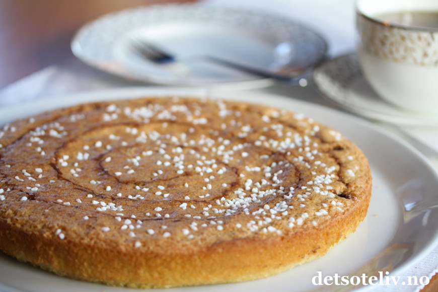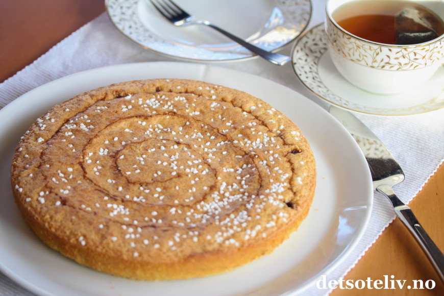 Artig at man ser kanelspiralen oppå kaken, synes jeg!