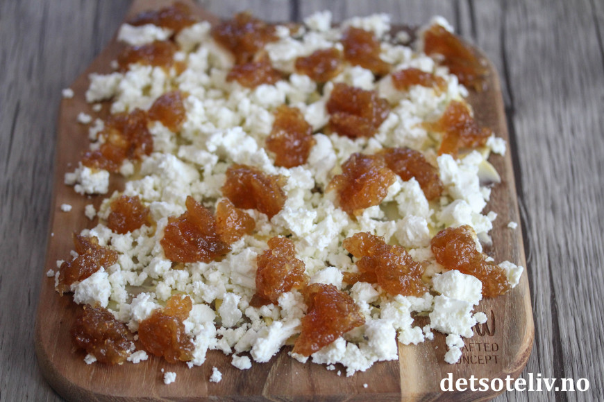 ♥ Chèvre er en herlig, fransk ost som lages av geitemelk ("chèvre" betyr "geit" på fransk). Jeg brukte her en norskprodusert ferskost-variant som er veldig kremete og uten skorpe (mens modnet chèvre har en fastere skorpe på utsiden).