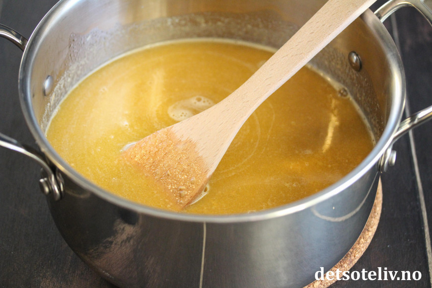 Ha melk, smør, sirup og sukker i en kjele. Varm opp på middels varme til smøret og sirup har smeltet.