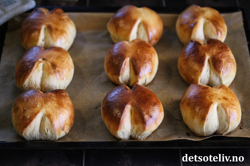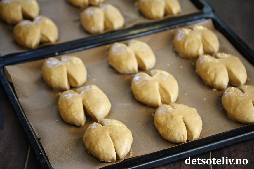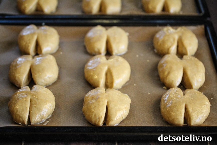 Du må klippe solide hakk i bollene, for husk at hakkene vokser sammen når bollene eser opp under stekingen.