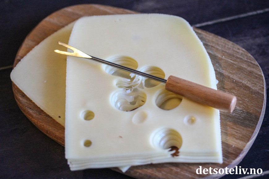 Bruk helst en ost med litt kraftig smak, som for eksempel cheddar eller Jarlsberg.