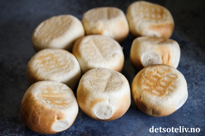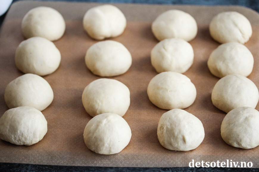 Sett bollene på et bakepapirdekket brett og la dem heve i ca. 1 time.