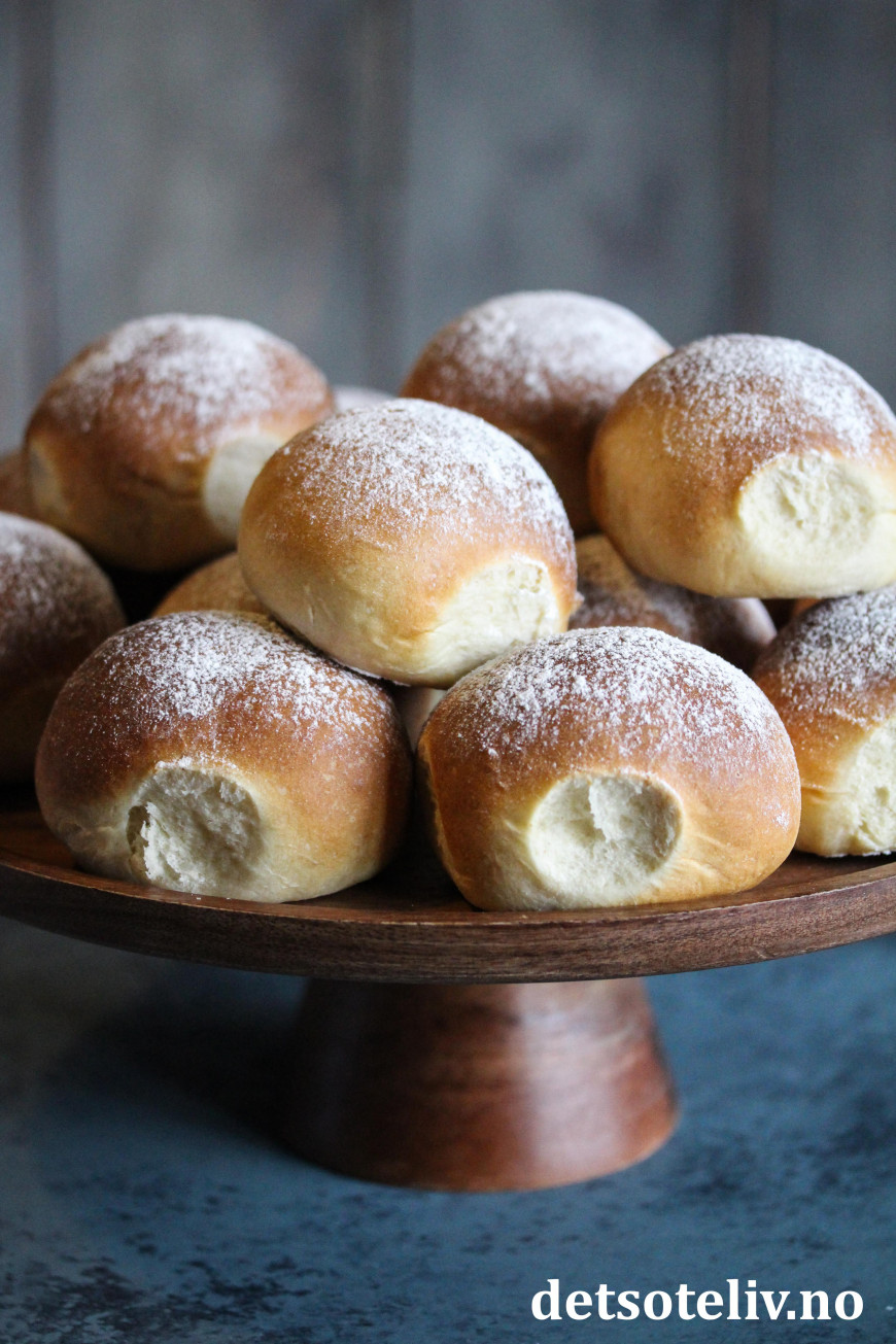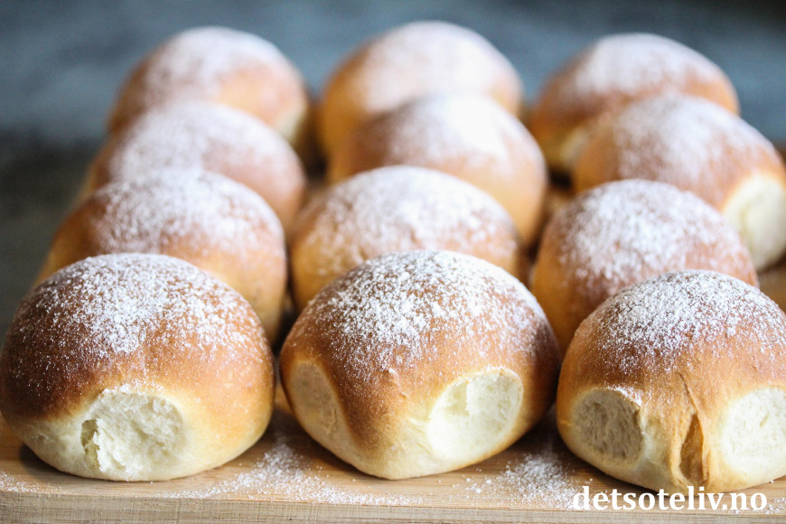 En av de mest populære oppskriftene her på Det søte liv er bolleoppskriften som jeg har kalt "Verdens beste boller". Gjærdeigen kjennetegnes av at melk, smør og melis gis et raskt oppkok og deretter avkjøles igjen før væsken blandes med gjær, kardemomme og hvetemel. Denne prosessen gir utrolig myke og luftige boller. Årsaken er visst nok at et oppkok av melken bryter ned et enzym som ellers demper heveprosessen. Uansett – dette er definitivt en av mine favorittoppskrifter!