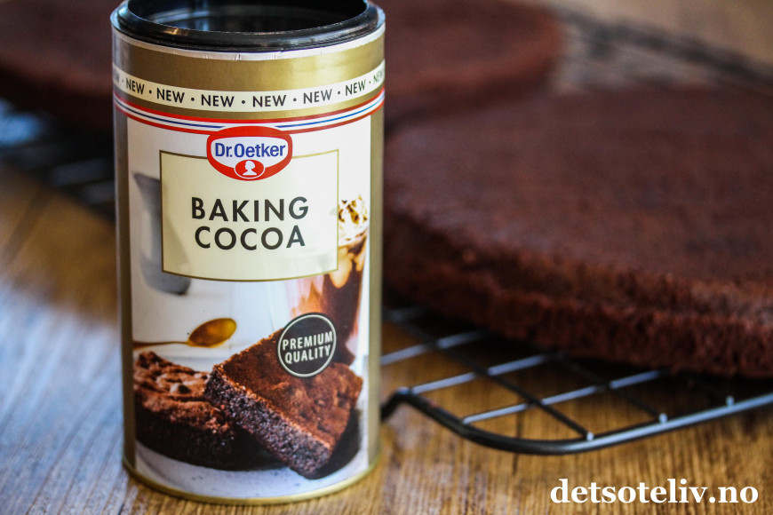 Både kaken og sjokoladekremen lages med gode mengder kakaopulver, og med det nye kakaopulveret til Dr.Oetker, får du en virkelig god og akkurat passe sterk sjokoladesmak på kaken!