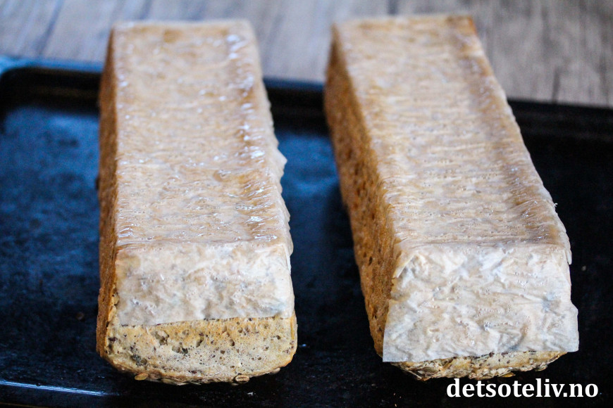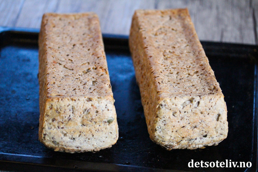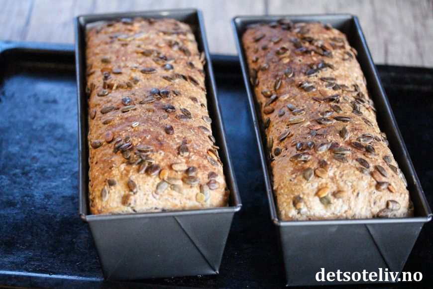 Disse brødene elsker jeg! Jeg følger oppskriften, deler dem i to, og fryser. Trenger ikke bekymre meg om brødet er et par dager gamle. De er like saftige og gode da også. Eneste jeg ikke gjør, er bakepapir i bunnen. Jeg smører formene med hanskekledd hånd, i soyamargarin. De setter seg ikke fast i formene, og lar seg lett helle ut i ovnen for snuing.