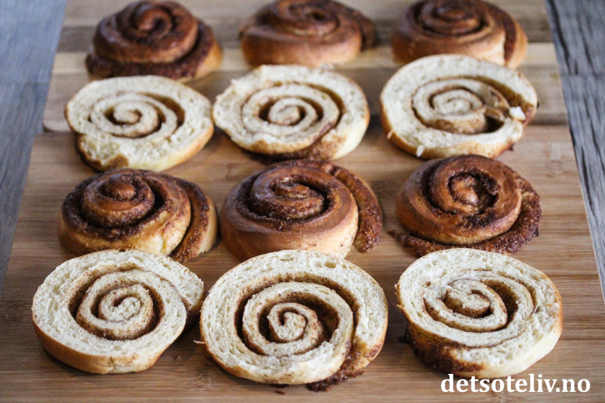 Disse bollene falt dessverre ikke i smak hos oss. Selve kanelsnurrer smakte litt rart, samtidig som de ikke smakte så mye… de ble nesten litt crispy selv om de ikke var overstekt. Kanskje det er litt mye smør? Og kanskje det skal være slik?