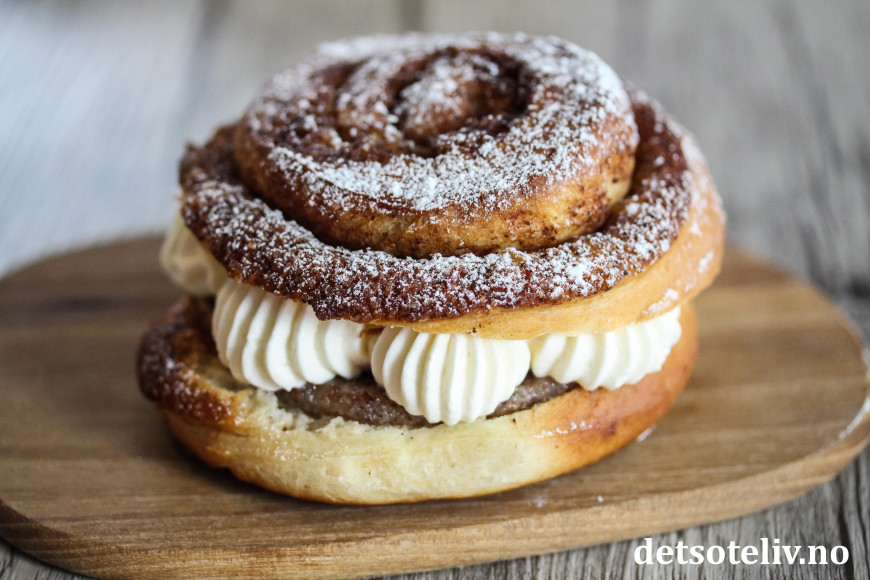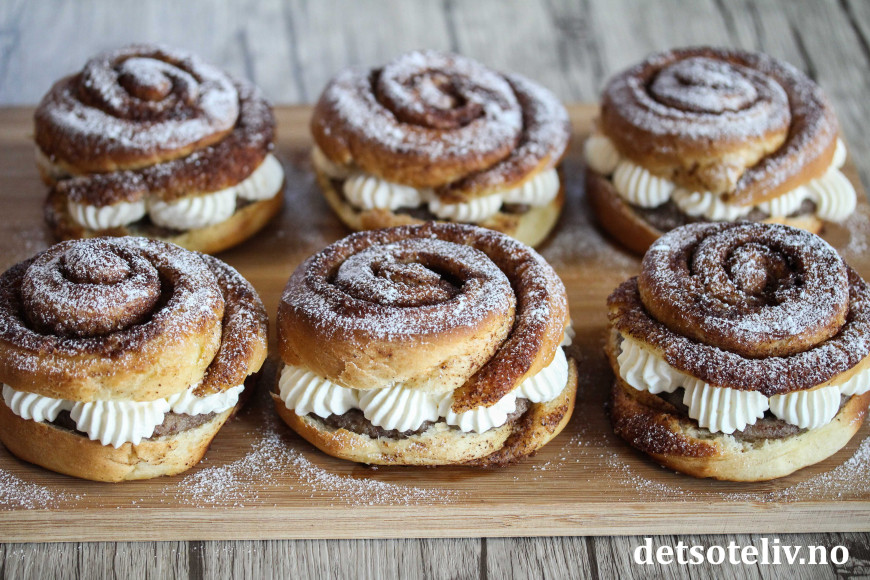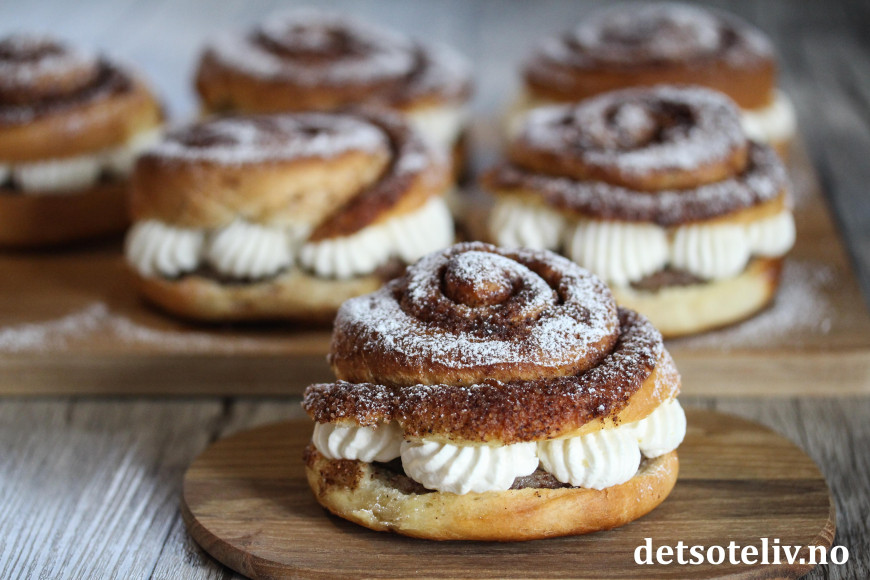Konseptet er altså å bake deilige Kanelboller, og så dele dem på midten og fylle med mandelmasse og pisket fløtekrem.
