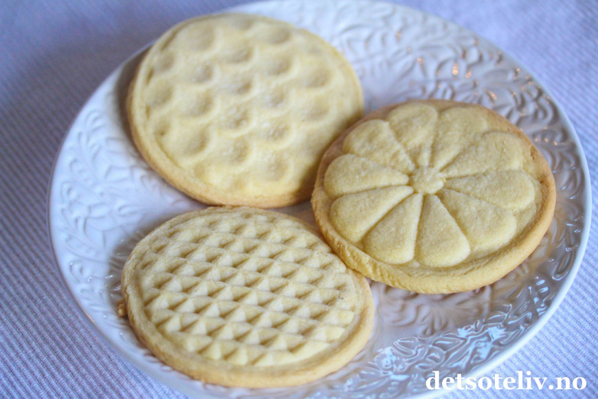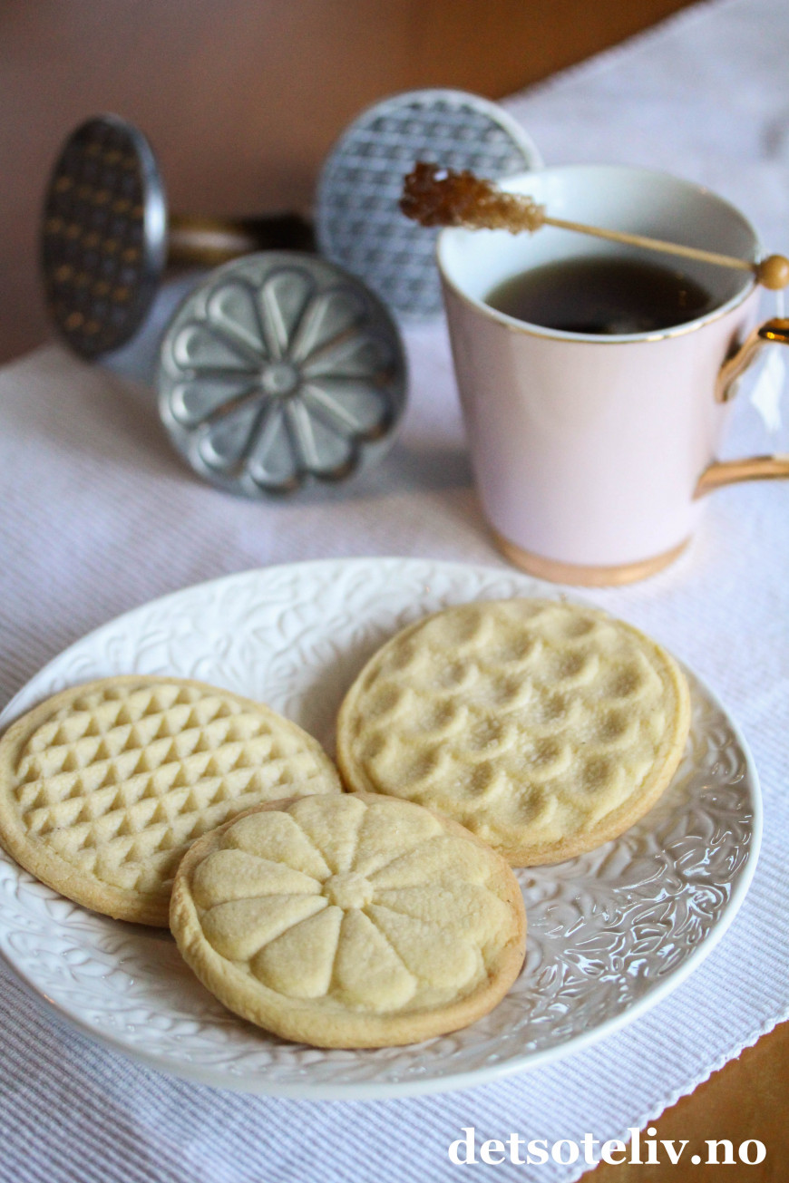 Ekstra fine blir vaniljekjeks som stemples så de får en vakkert mønster. Du finner flere fine kakestempler i den fantastiske nettbutikken til Bakeren og Kokken.