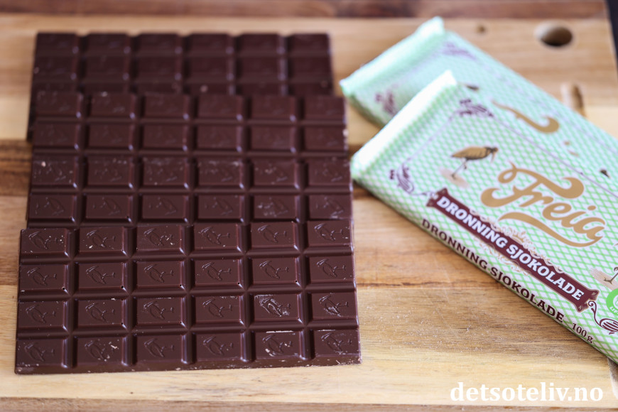 ♥ Det er mye sjokolade i denne kaken, og det er avgjørende for smaken at du bruker kokesjokolade av god kvalitet, derfor anbefaler jeg at du bruker Freia Dronningsjokolade.