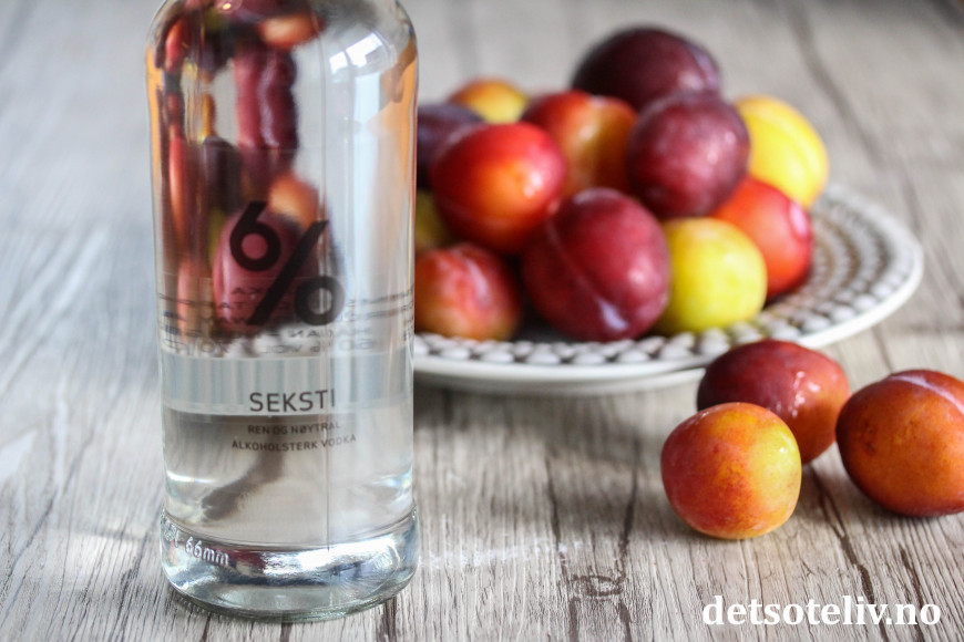 ♥ Det går fint å bruke vanlig vodka (40%). Den ferdige likøren får lavere alkoholprosent enn vodkaen, fordi plommene avgir en god del saft som tynner ut alkoholen.