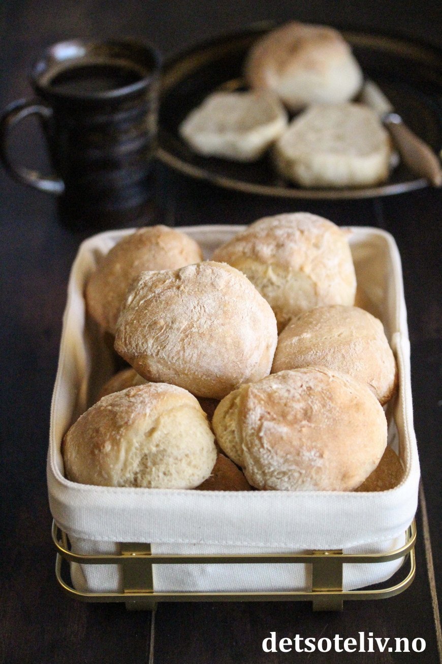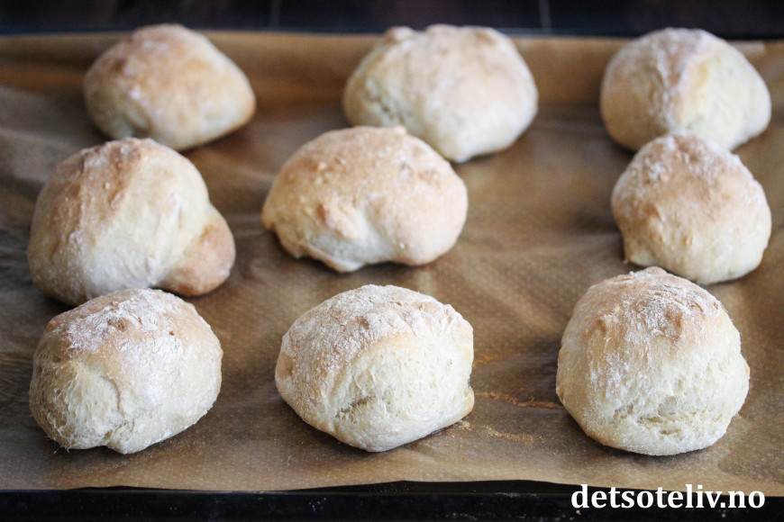 Skorpen på rundstykkene blir skikkelig sprø og deilig!