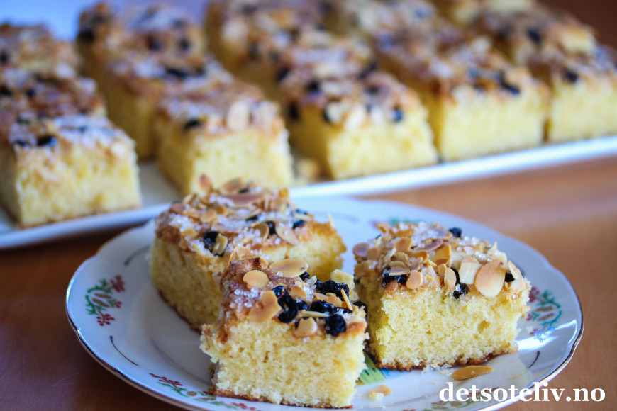 Her har du en oppskrift til stor langpanne. Se også oppskriften på Mor Monsen til liten langpanne, som tidligere er lagt inn her på detsoteliv.no. Men hvorfor lage en liten porsjon? Kaken holder seg myk lenge og forsvinner dessuten fort fordi den er så utrolig god!!