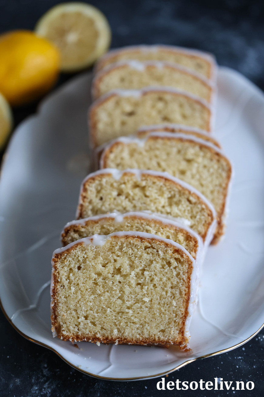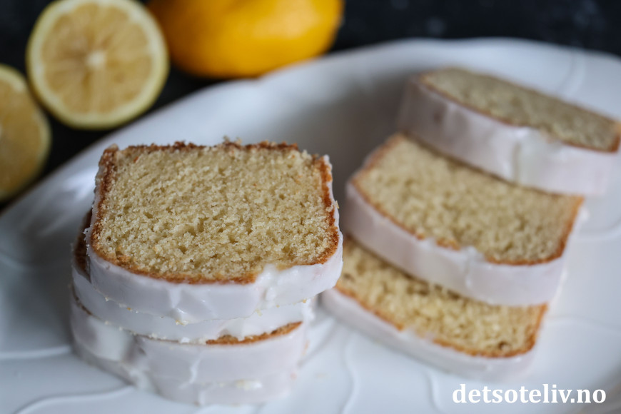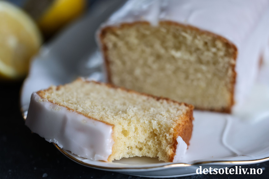 Den myke konsistensen på sitronkaken kommer av at deigen inneholder kombinasjonen egg, smør, olje og rømme.