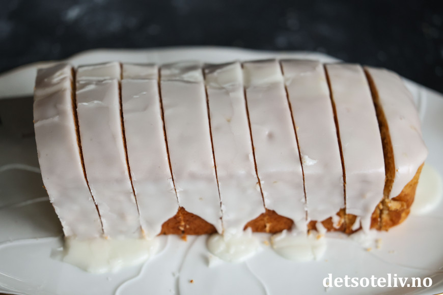 ♥ Tilpass mengden melk i glasuren, start med 1 ss og se om du trenger litt mer. Det er meningen at glasuren skal bli skikkelig tykk slik at den legger seg i et tykt, hvitt lag oppå kaken.