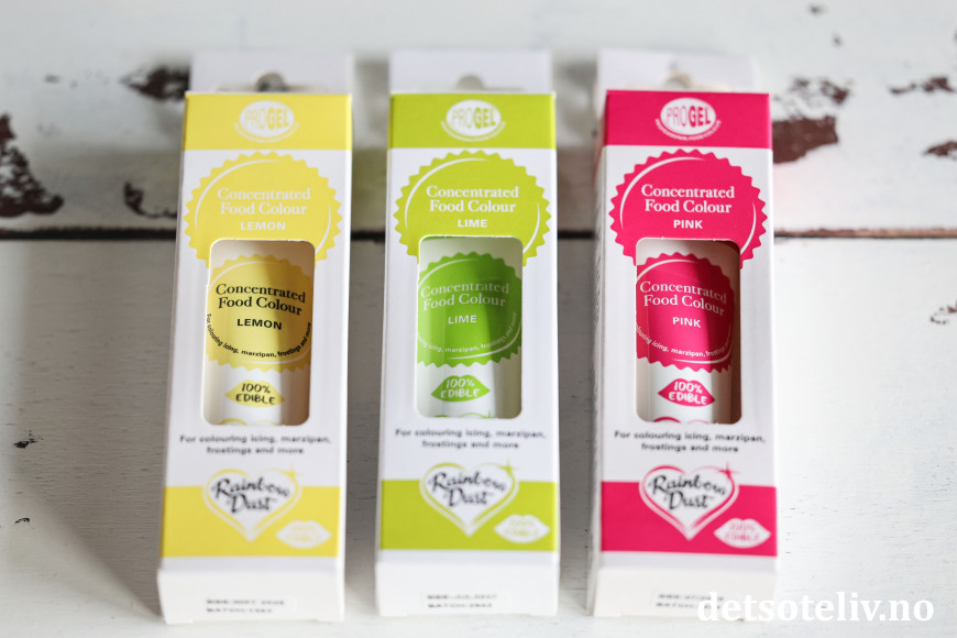 ♥ Konsentrert konditorfarge er supert å bruke fordi fargen ikke endrer konsistensen på kremen. Se populære farger fra Progel HER (min favoritt).