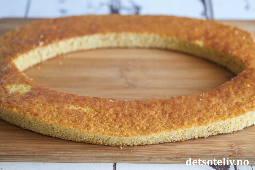 Sett den nederste kakebunnen på et fat.