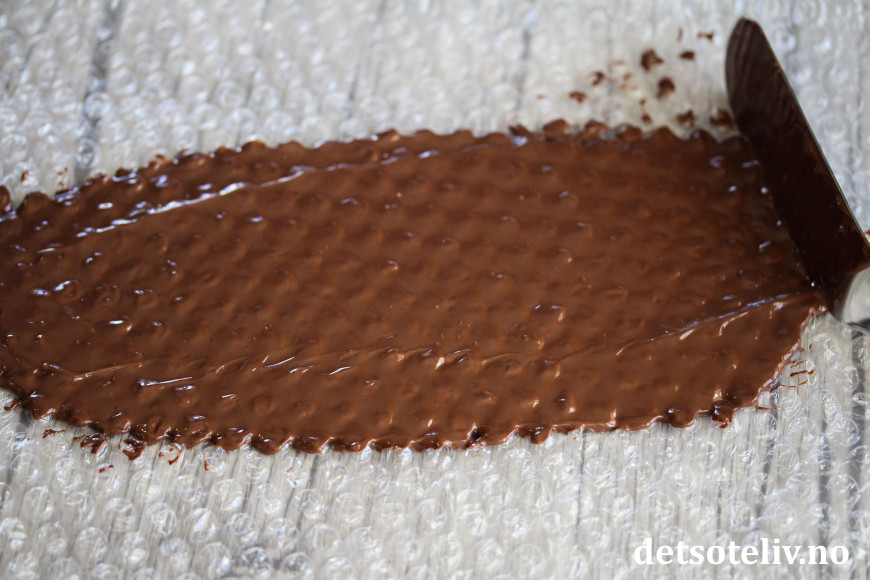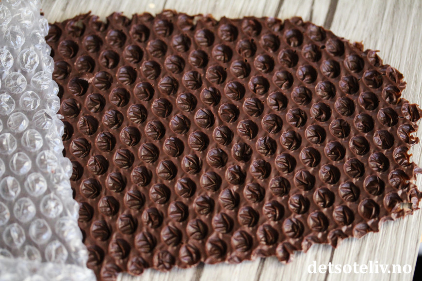 3) Et annet artig tips er å smøre smeltet sjokolade over bobleplast i et jevnt lag.