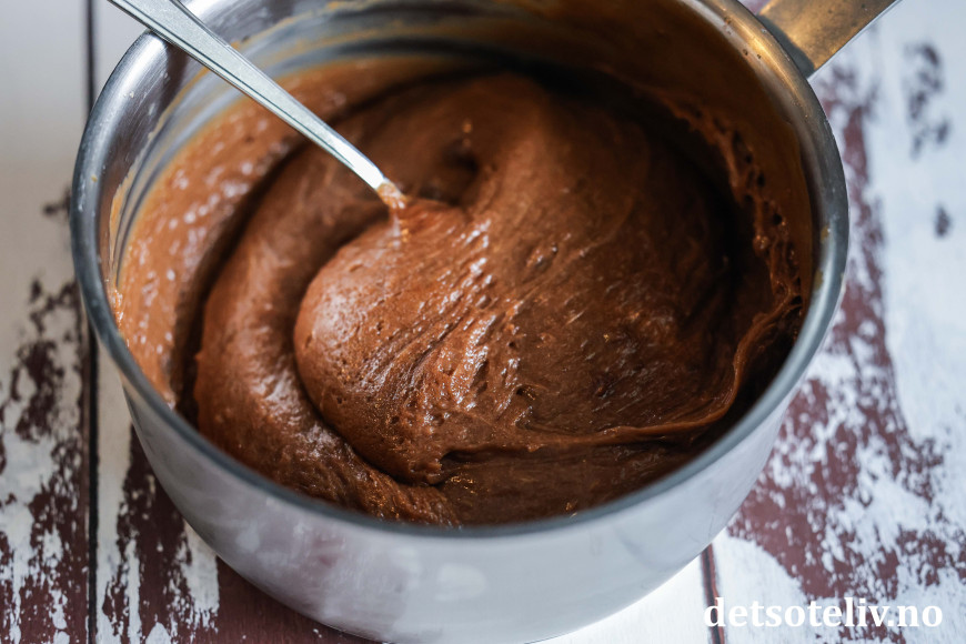 ♥ For at sjokoladekremen skal bli tilstrekkelig fast, er det viktig at du koker eggeplommer, sukker og kaffe-blandingen såpass lenge at den tykner skikkelig. Først da tas kjelen av platen, og du kan blande inn sjokolade og smør. Visp hele tiden mens småkokingen pågår, og pass nøye på at kremen ikke setter seg fast i bunnen på kjelen, eller blir brent under kokingen.