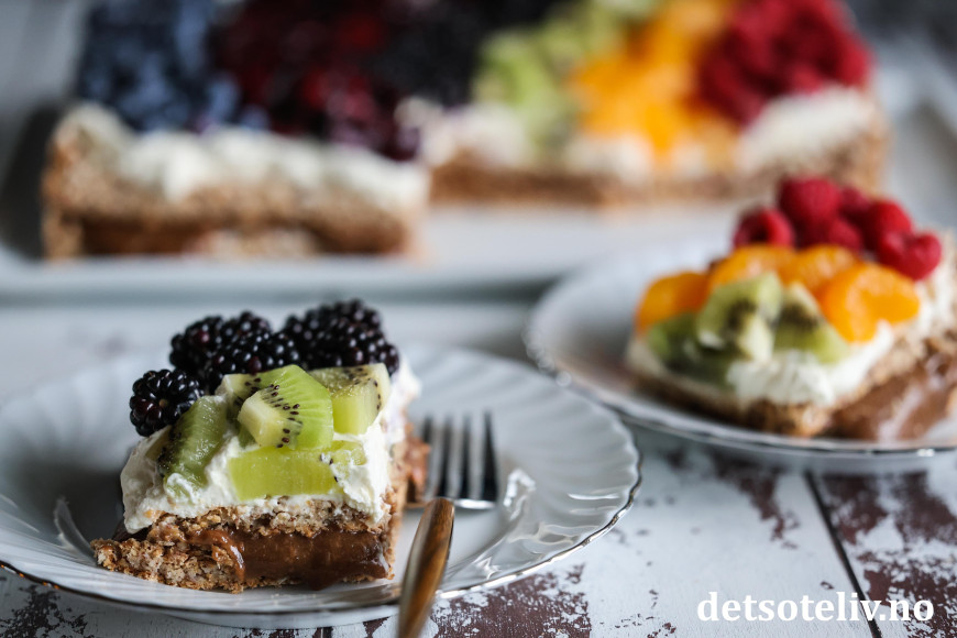 ♥ Du kan bytte ut typer frukt og bær som jeg har brukt, og også mengdene er veiledende. Bruk fantasien og det du har av ingredienser for å lage en fargerik og fristende kake! 😃