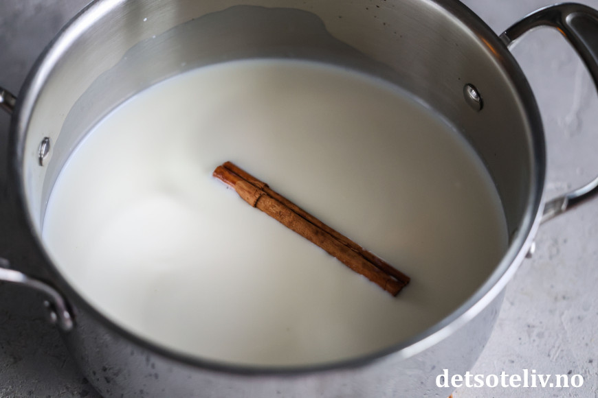 Melkesuppen er ferdig kokt når grøtrisen er helt myk og suppen har fått en litt fyldigere konsistens. Ta kanelstangen ut av kjelen før servering.