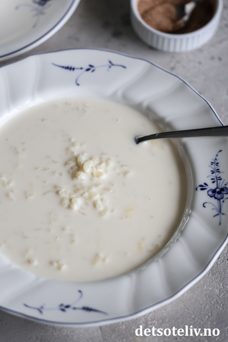 Her er en annen gammeldags melkesuppe, med risengryn denne gangen. Suppen har lange tradisjoner og lages med få ingredienser.