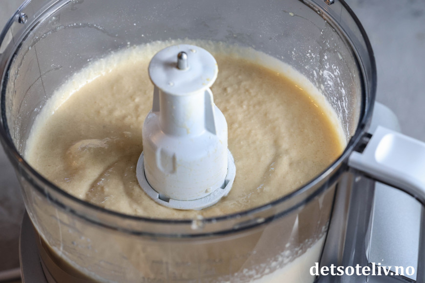Kjør dette sammen til en klumpfri masse. Tilsett bakepulveret og kjør videre slik at bakepulver blander seg jevnt i marsipandeigen.