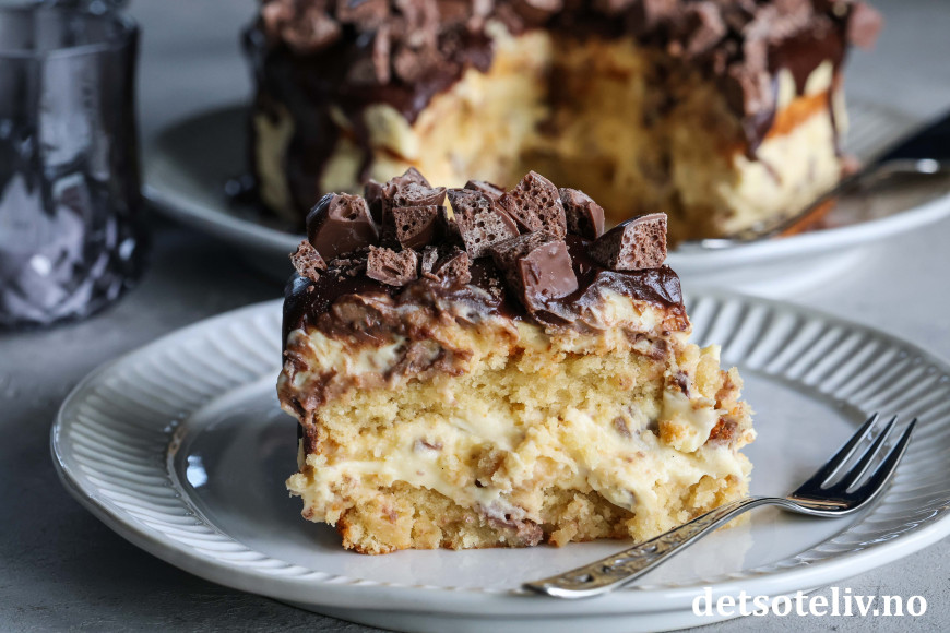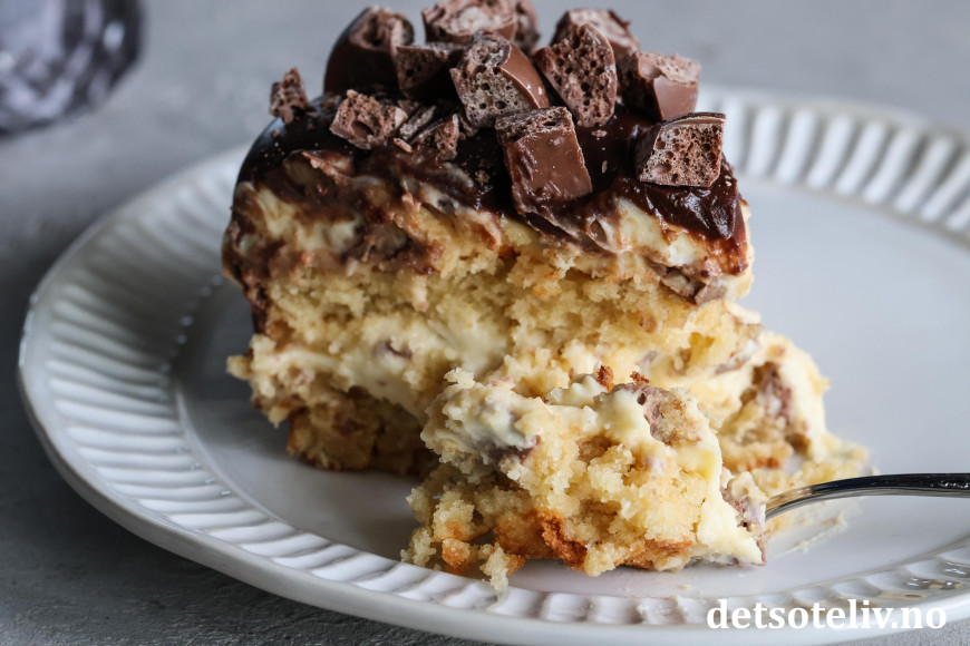 Hvis du liker kombinasjonen vaniljekrem og melkesjokolade, er dette definitivt kaken for deg! 😋