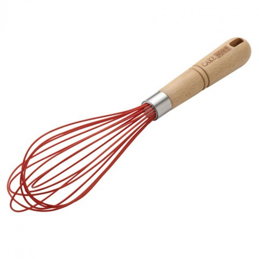 Ballongvispen er i rustfritt stål, men har silikonbelegg og derfor likevel lekker, rød farge.