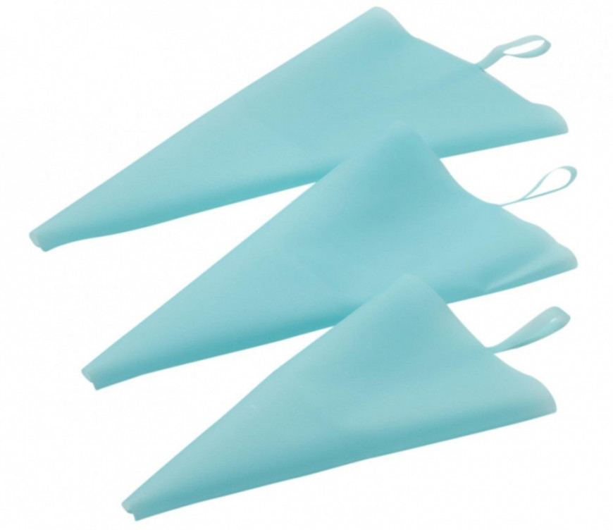 I tillegg til sprøytetippene, følger det med 3 stk gjenbrukbare sprøyteposer i myk silikon i størrelsene 20cm, 25cm og 30cm.