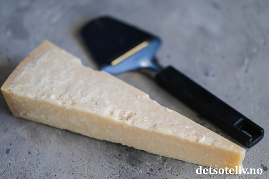 ♥ Parmesanflak lager du lett med en ostehøvel. Det går også å kjøpe parmesan ferdig oppskjært i flak.