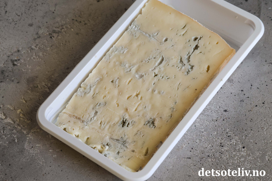 ♥ Gorgonzola dolce er en mild og kremete blåmuggost. Merk at jeg fjerner skorpen og at 300 gram altså er vekt etter at skorpen er skjært bort.