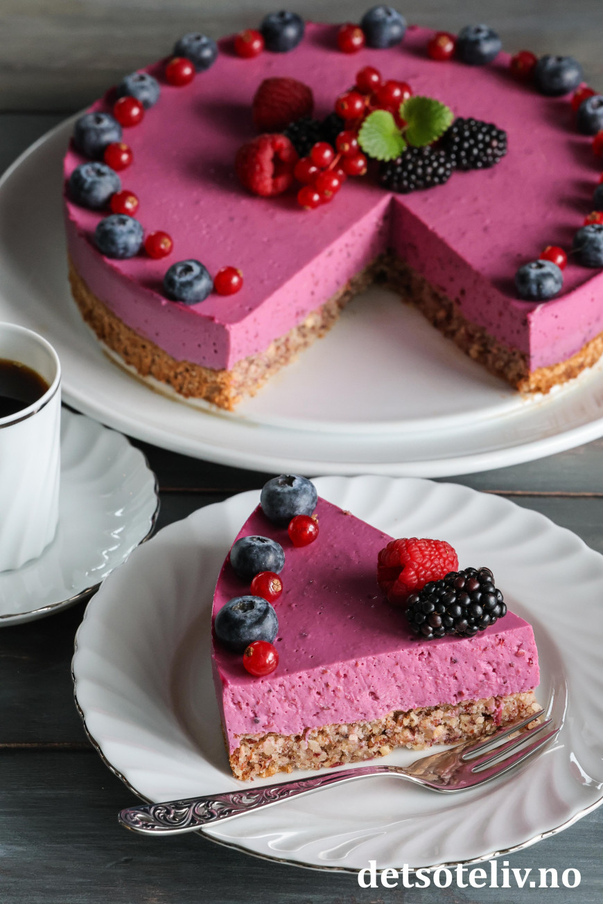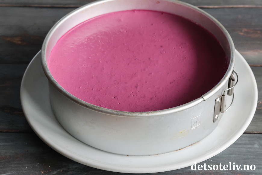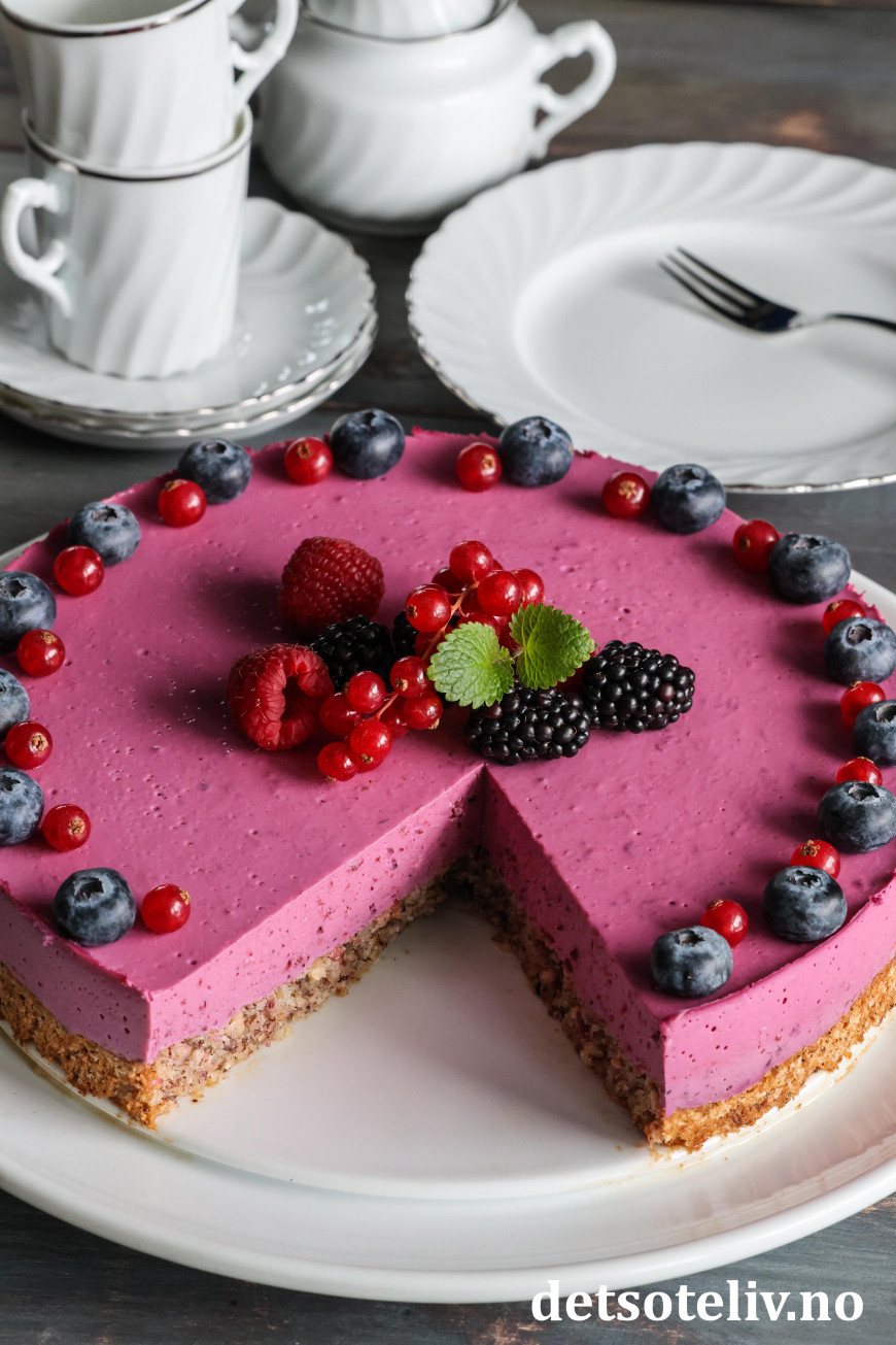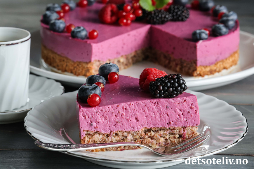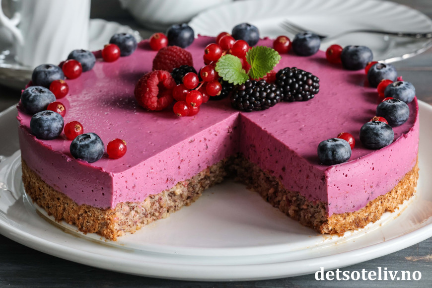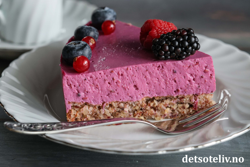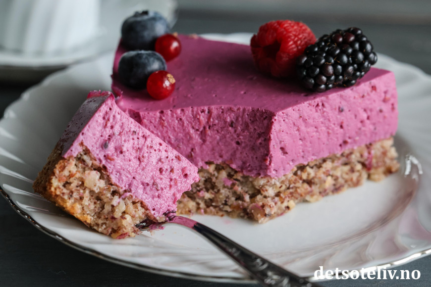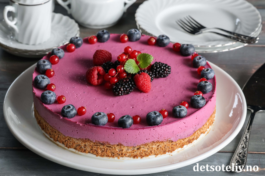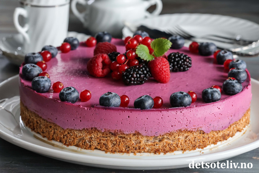Skogsbærfromasjkaken får lekker farge og smaker nydelig!