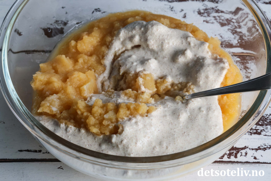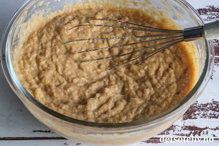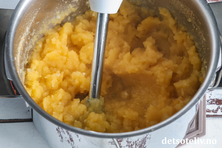 Sil vekk vannet. Mos med stavmikser til en klumpfri mos.