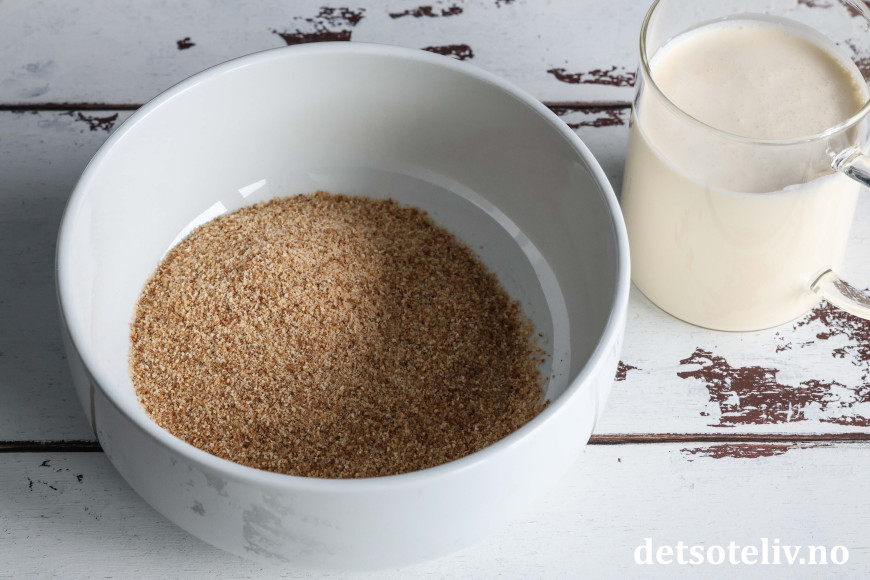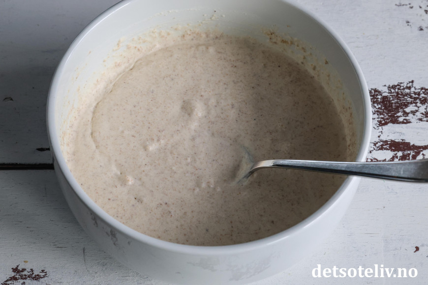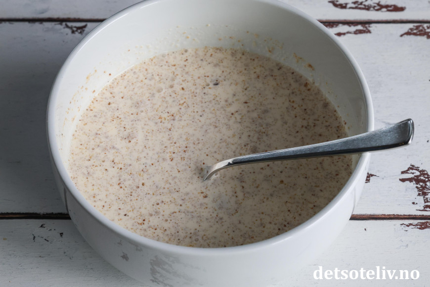 Ha strøbrød i en skål. Bland med fløten. La dette stå og svelle i 10 minutter.