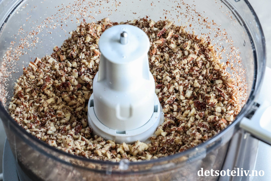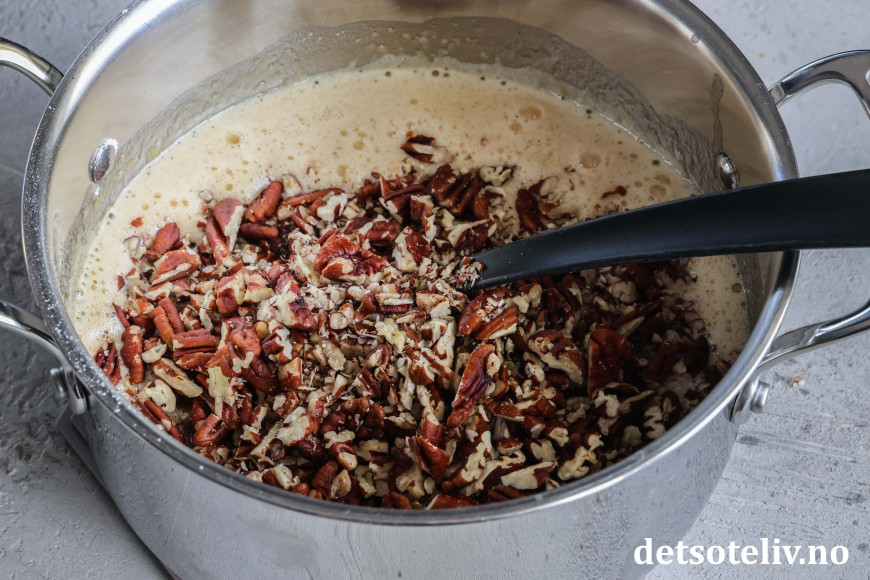 Rør inn de fint hakkede pekannøttene.
