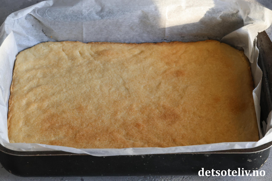 Ta den stekte bunnen ut av ovnen og avkjøl i 10 minutter.