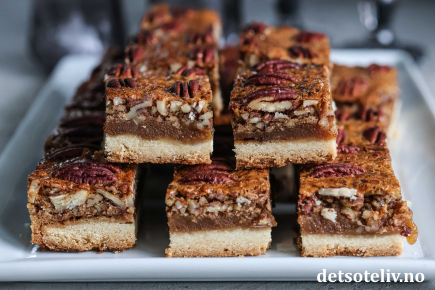 Pecan Pie er en av mine favorittkaker! 😍 Kaken består av mørdeigsbunn som toppes med et søtt og deilig fyll laget med masse pekannøtter og sirup.