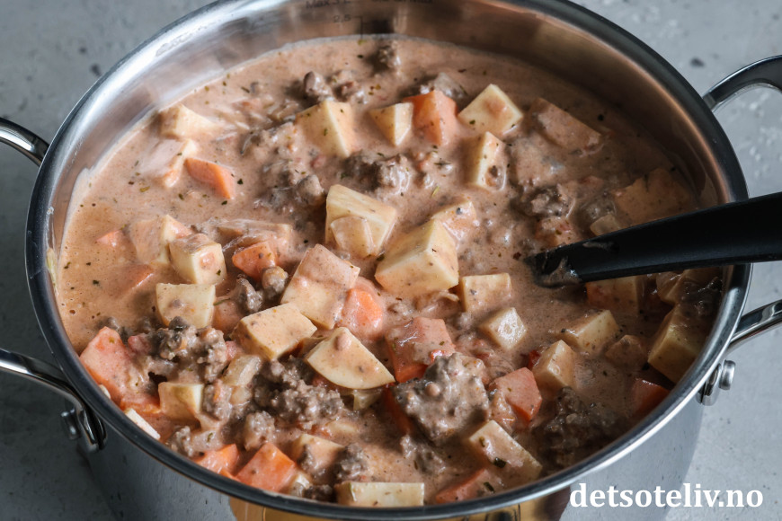 Ha dette i gryten og bland det hele godt sammen.