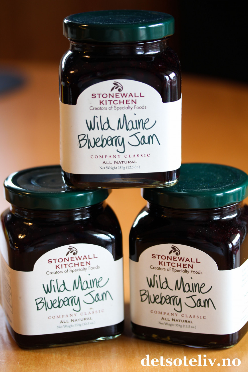 Wild Main Blueberry Jam er laget med villblåbær og er blant de mest populære syltetøyene til Stonewall Kitchen.