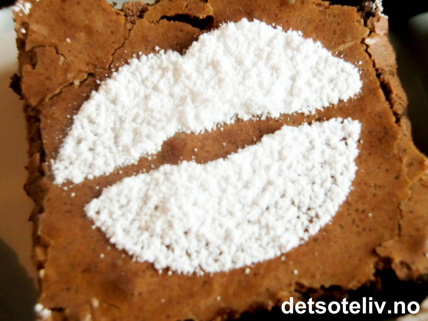 Den skjønne pynten på browniesene du ser på bildet lager du enkelt ved hjelp av stensiler med kjærlighetsmotiv. Fås blant annet kjøpt i nettbutikken til www.cacas.no i merket Wilton. Bare legg stensilen på browniesstykket og sikt over melis. Fjern stensilen forsiktig og vips har du "Adorable, Lovable Chocolate Brownies":-)