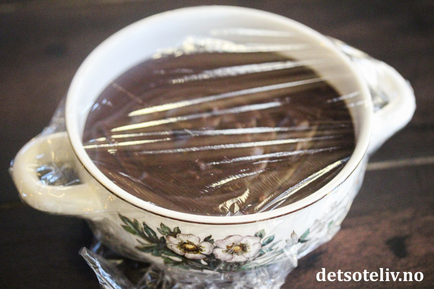 Ha sjokoladeblandingen i en skål og sett i kjøleskapet (gjerne over natten), til den har stivnet.