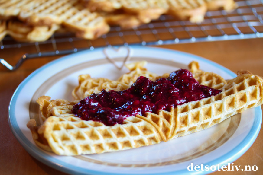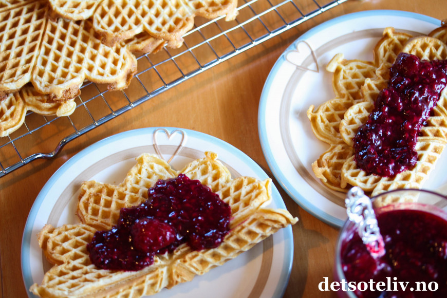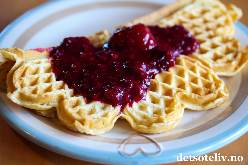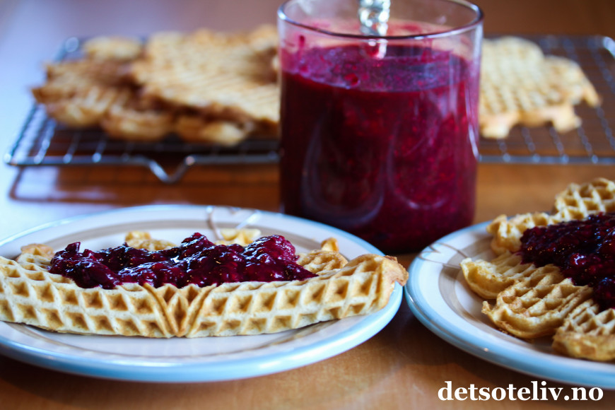 ♥ Alliansesyltetøy er godt på alt fra brødskiva, boller, i kaker, på scones etc. Jeg lagde Vafler med vikingmelk etter oppskrift her på Det søte liv. Vaflene smaker kjempegodt sammen med syltetøyet!