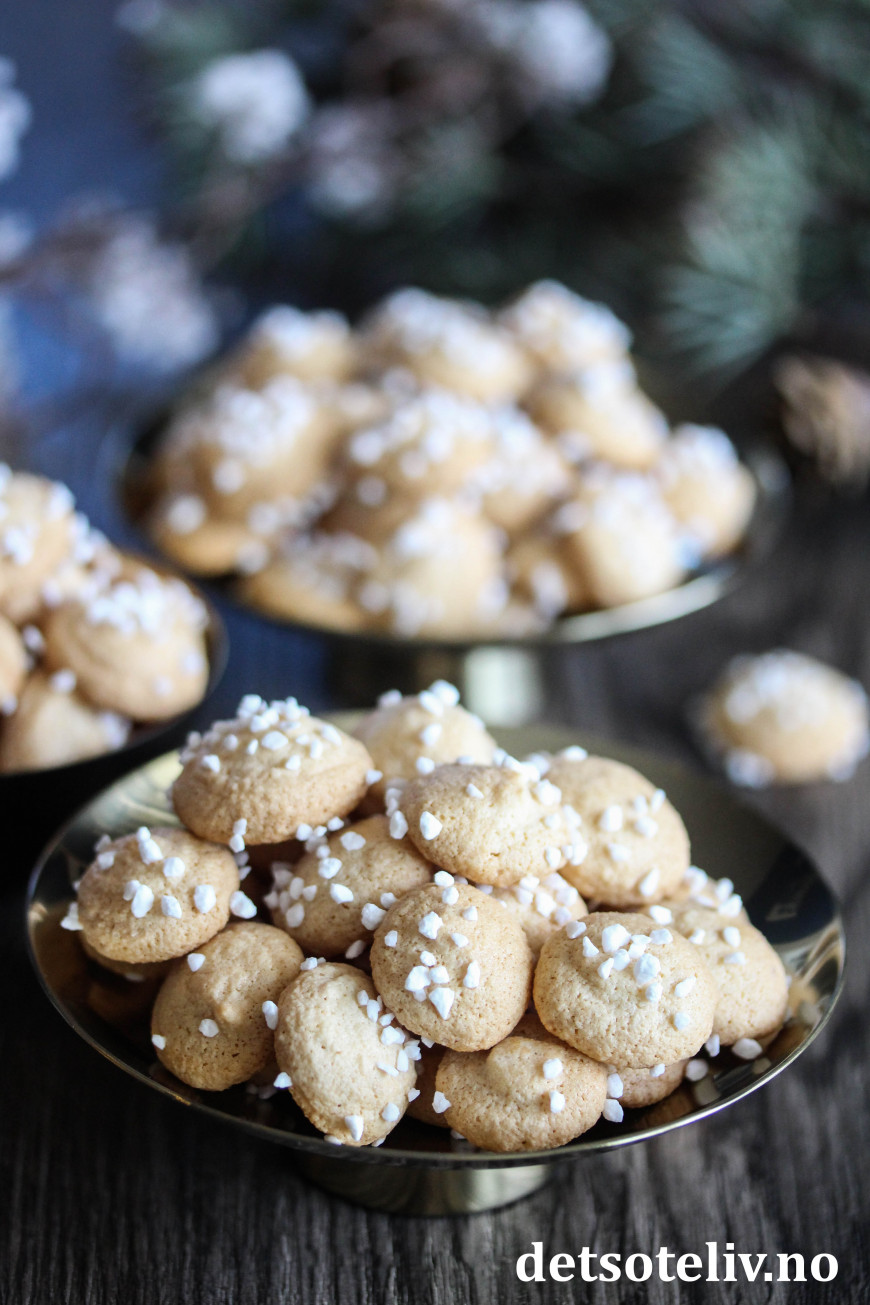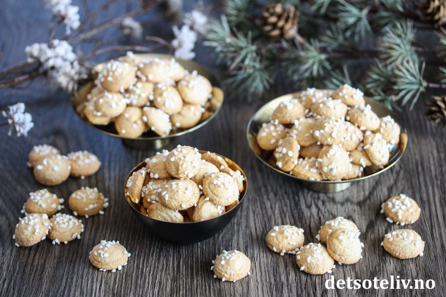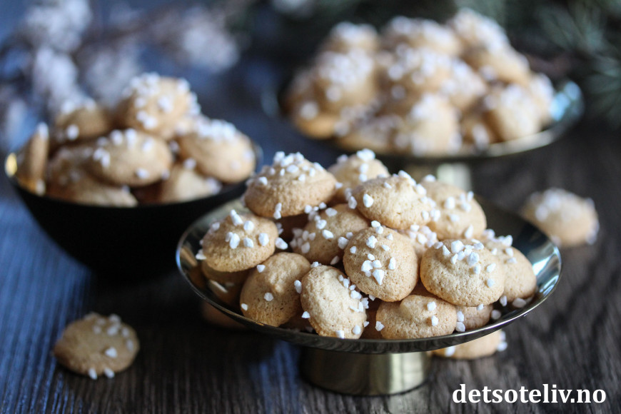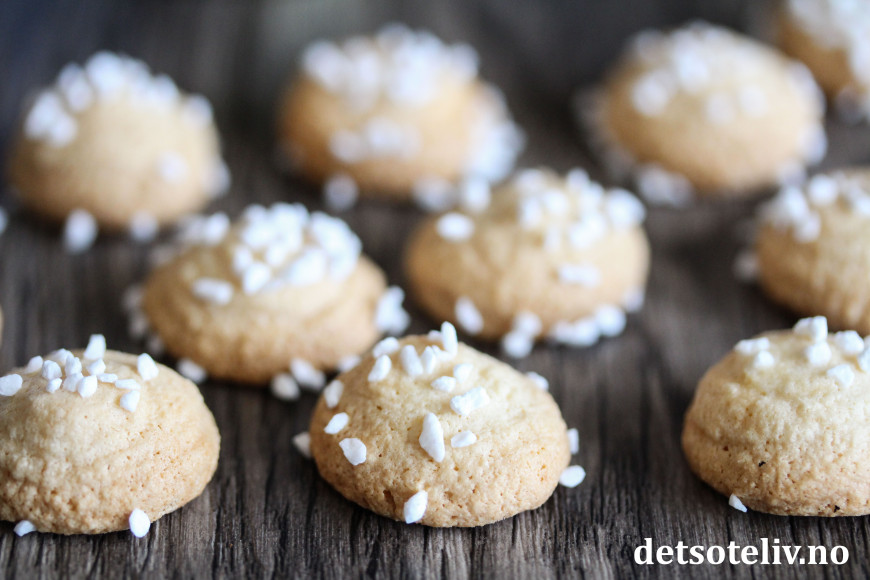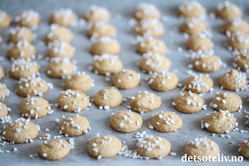 ♥ Jeg har her brukt perlesukker som holder seg hvitt gjennom stekingen (svensk perlesukker). Fås kjøpt også i norske matbutikker med stort utvalg.