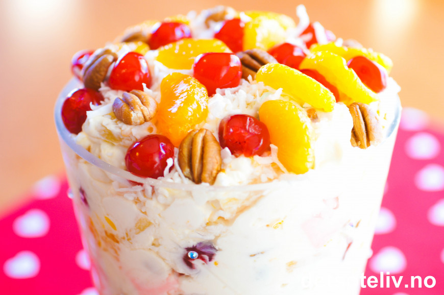 "Ambrosia Salad" er en veldig populær dessert i Amerika!